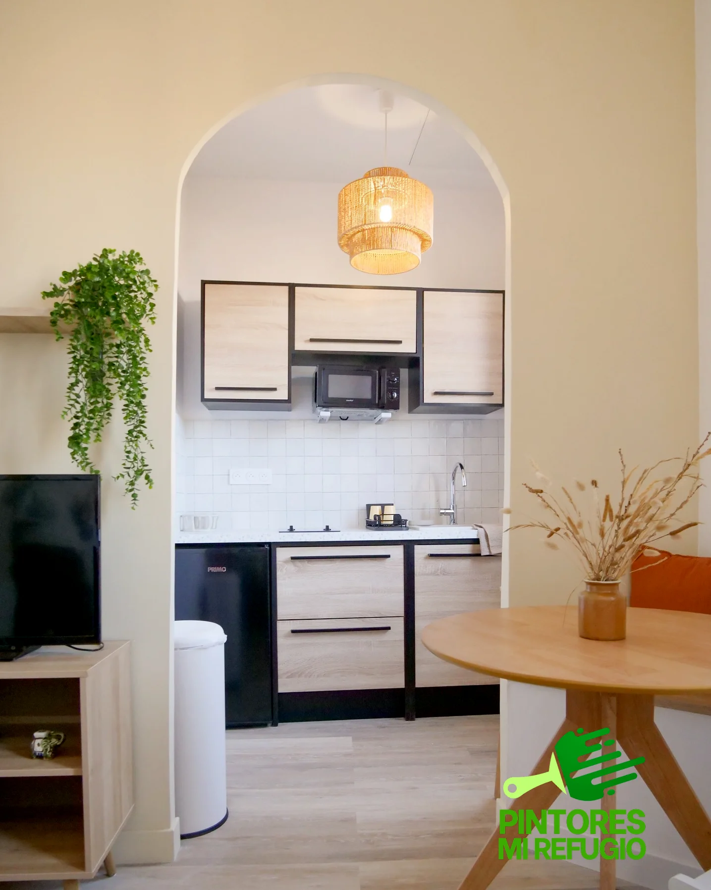 Tras nuestra intervención en la calle Bravo Murillo 300, 28020 Madrid (Tetuán), este espacio se transformó en un área moderna y funcional. Instalamos nuevos armarios en tonos neutros, iluminación colgante de diseño, y añadimos una mesa de madera con detalles decorativos como plantas y flores secas. ¡Confía en nosotros para renovar tu hogar con estilo!