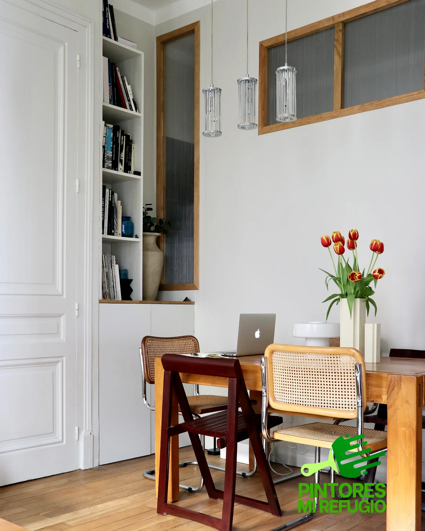 Nuestra empresa, Pintores Mi Refugio, ha realizado una renovación integral en un acogedor espacio en la calle General Pardiñas 28, 28001 Madrid (barrio de Salamanca). En esta ocasión, transformamos un área residencial con una pintura fresca y moderna, instalamos nuevos sistemas de iluminación colgante, y realizamos trabajos de aislamiento con materiales de alta calidad como los de ISOVER. Además, se incluyeron detalles decorativos como arreglos florales y reorganización del mobiliario, dejando un ambiente elegante y funcional. ¡Confía en nosotros para dar vida a tus espacios!